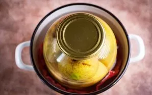 9. Tada išimkite stiklainį iš vandens ir sandariai uždarykite dangteliu, apverskite jį dangteliu žemyn, apvyniokite stora antklode, kad lėtai atvėstų, ir palikite per naktį.