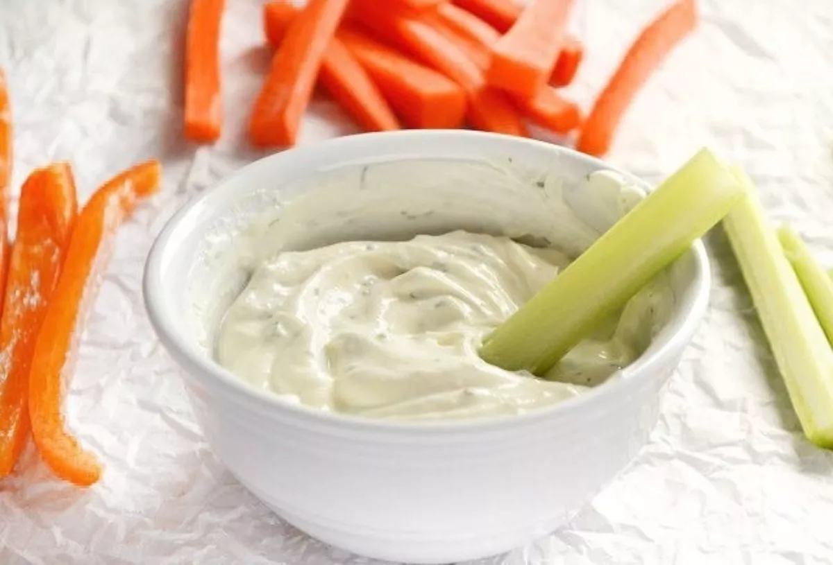 1. Į dubenį sudėkite grietinę, įberkite citrinpipirių, druskos, česnako miltelių ir išmaišykite.