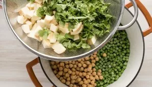 2. Suberkite žirnelius į puodą. -